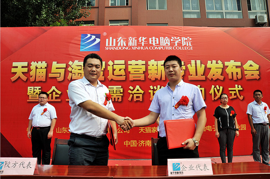 近年来,随着中国电子商务产业的异军突起,各行各业纷纷都在搭建或开拓自己的电商渠道,行业发展的如此迅猛,但电商领域的高端人才缺口也在不断的放大。面对这样的时代背景,山东新华电脑果断开拓最具前瞻性的新专业,“天猫与淘宝运营”专业就此应运而生。本次不单只是新专业的发布会,同时也是校企供需合作的签约仪式,山东新华电脑学院始终以市场为导向、采用最先进的“校企合作”模式,这种订单式的培养机制,确保了学生们能够学有所长、学有所用。