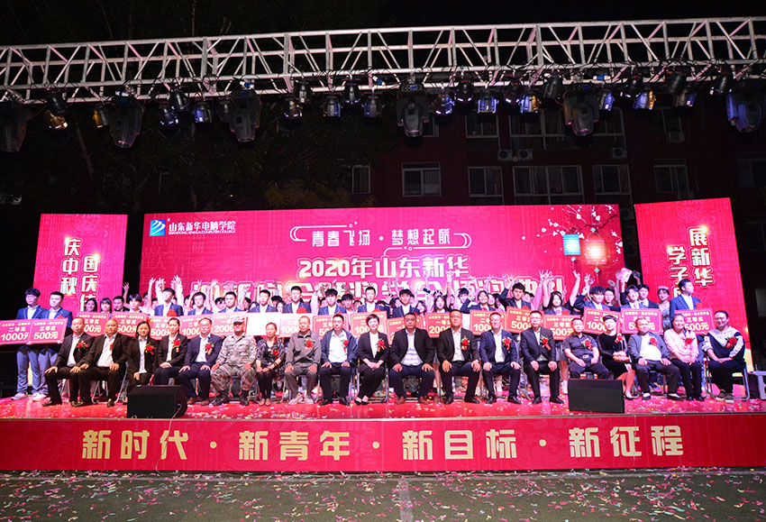 9月27日晚,华灯初上,山东新华电脑学院足球场师生云集,热闹非凡,“青春飞扬·梦想起航”2020年山东新华迎新晚会暨奖学金颁奖典礼在此华丽启幕。山东新华电脑学院院长陈伟红、院长助理王助理、陈助理、教学负责人范主任、西校区负责人刘主任、美里校区负责人朱主任、东校区负责人武主任等学院领导出席晚会,和千余名入学新生共同见证这一重要时刻。